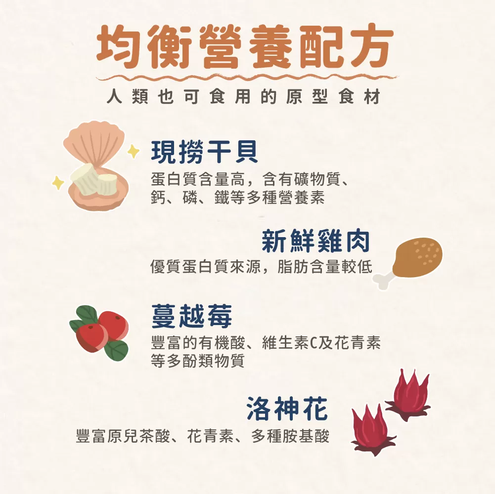 ★天然雞肉、無添加爭議膠類、澱粉、調味劑